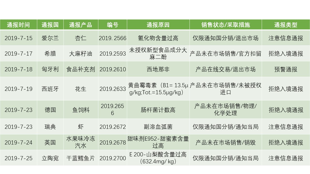 据欧盟食品饲料类快速预警系统(RASFF)消息,近期通报中国食品及相关产品8例,餐具等产品8例,具体通报信息如下:
