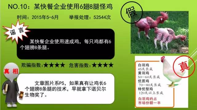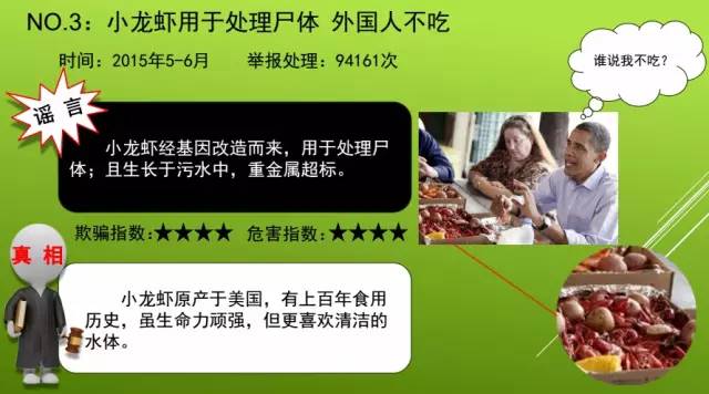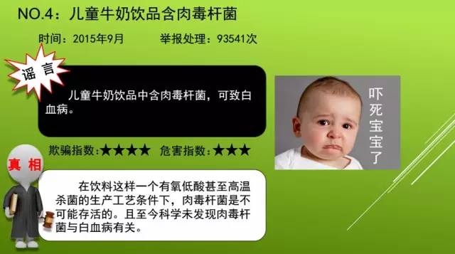 2016年1月12日,由国家食品药品监督管理总局、中国科学技术协会指导,中国食品科学技术学会举办的“2015年食品安全热点科学解读媒体沟通会”在京举行。会上,2015年十大食品安全微信谣言也正式“亮相”。