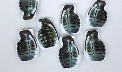 近日,一款名为“玩具手雷”的产品在网上销售火爆。玩具手雷约烟盒大小、手雷形状,外部为塑料材质,里面含有一个水剂用于挤破。一家网店介绍,手雷是这么玩的:“先把里面的水剂挤破,然后摇几下,让手雷鼓起来赶快扔出去,砰!砰!手雷开花了!身边的朋友不知道发生了什么,都惊呆了!”还有的店铺称,玩具手雷安全无毒,是小孩子替代鞭炮的好产品。