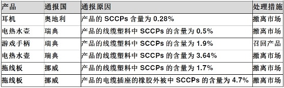 2015年至今欧盟市场通报的部分SCCPs超标产品